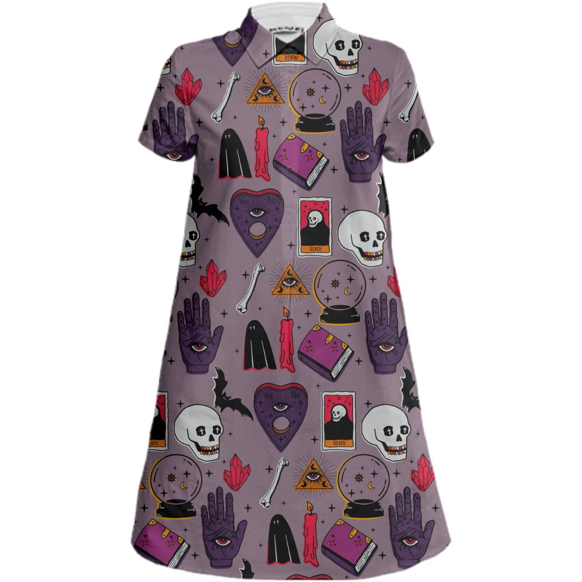 Sporty a-line collared mini dress with short sleeves a 5-button front placket and side seam pockets.