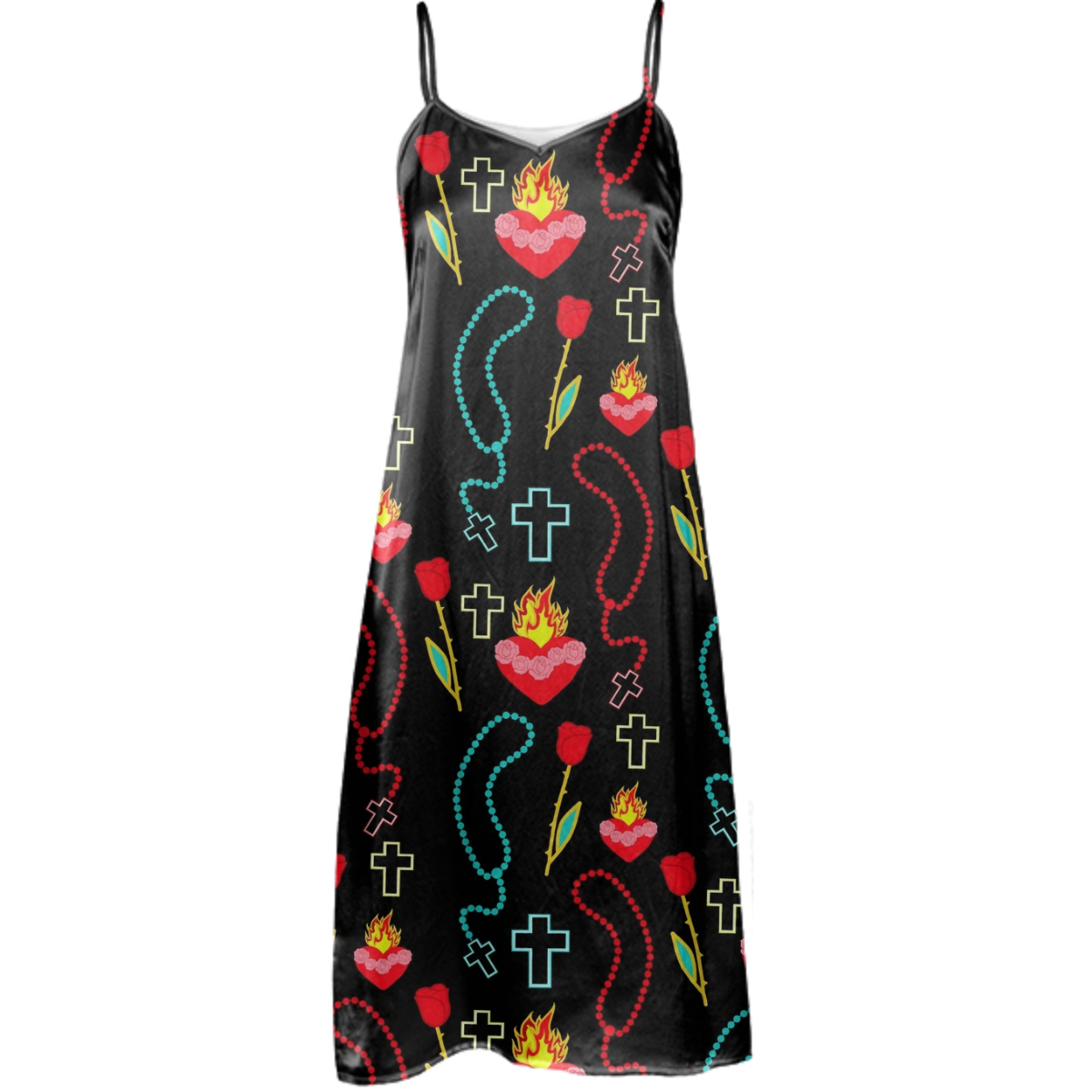 Loose flowy slip dress with adjustable spaghetti straps and 4 inch side slits.