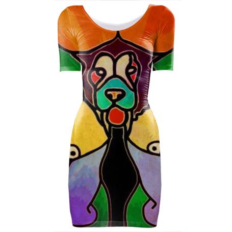 Tight fit scoop neck bodycon dress with set-in sleeves.