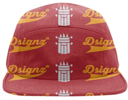 Five panel baseball hat with adjustable nylon strap for sizing.