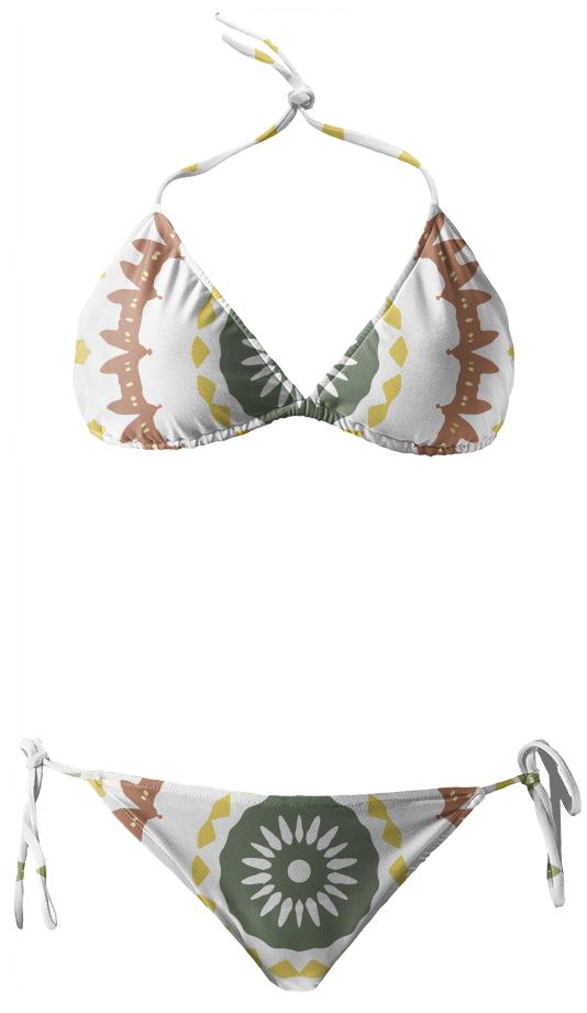 String bikini with ties at the neck bust and hips. Throw it in a bag and head to the beach!