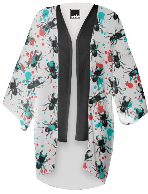 Flowy chiffon kimono falls nicely at mid thigh. Great for layering or using as a beach cover up.