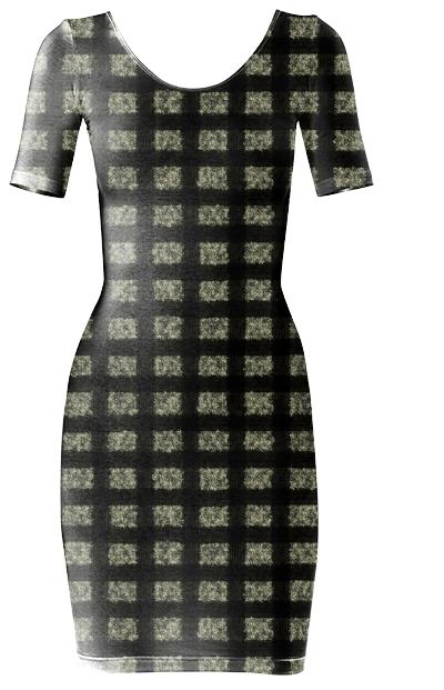 Tight fit scoop neck bodycon dress with set-in sleeves.