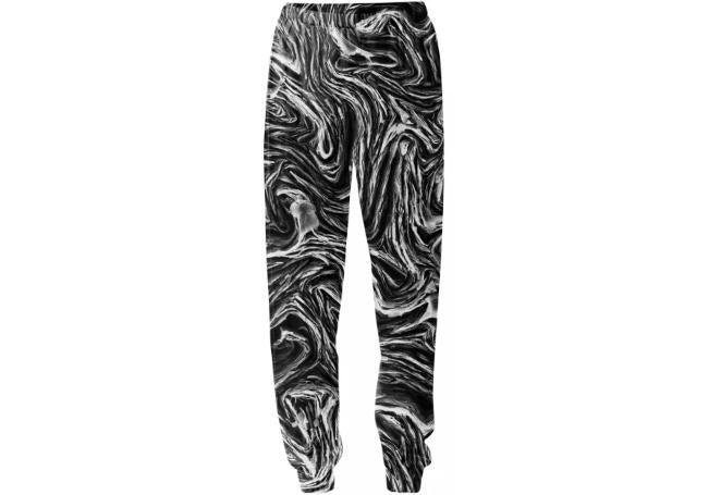 Thin jogger fit sweatpants with drawstring elastic waistband side seam pockets and elastic cuffs.