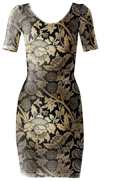 Tight fit scoop neck bodycon dress with set-in sleeves.