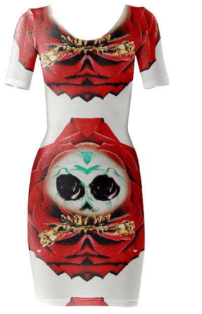 Tight fit scoop neck bodycon dress with set-in sleeves.