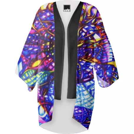 Flowy chiffon kimono falls nicely at mid thigh. Great for layering or using as a beach cover up.