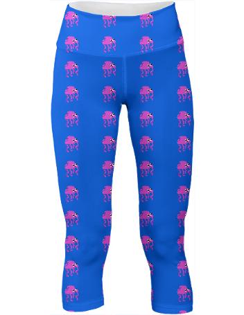 Mid calf length stretch yoga pants with an extra tall waistband for comfort and flexibility during workout.