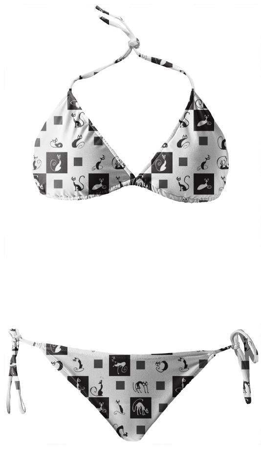 String bikini with ties at the neck bust and hips. Throw it in a bag and head to the beach!