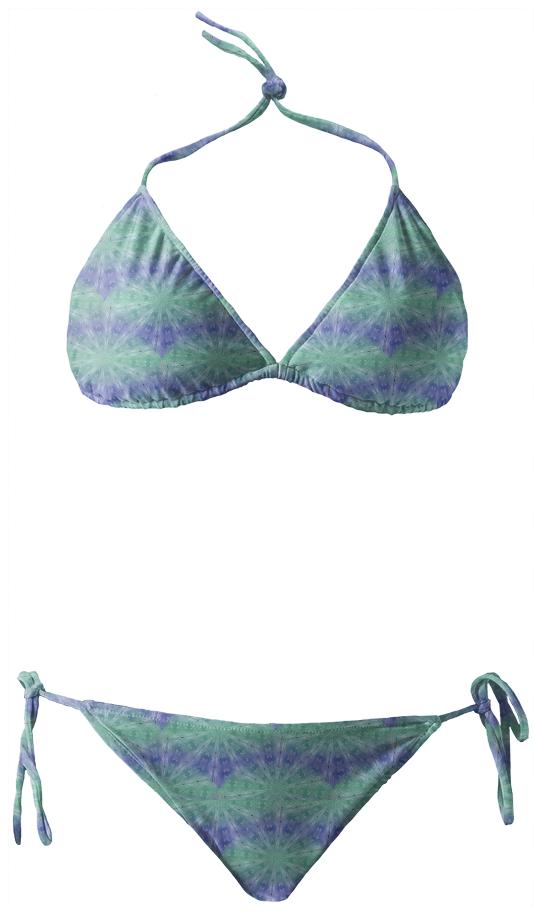 Purple And Green Spiral Pattern Bikini