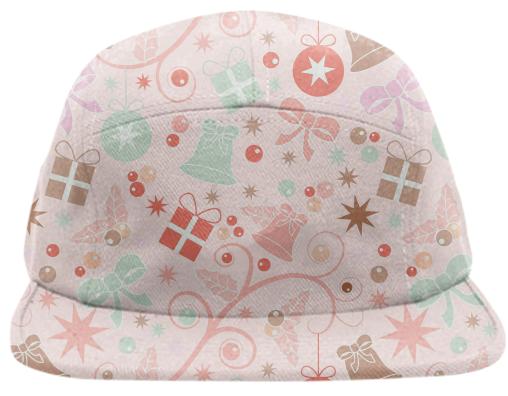 Five panel baseball hat with adjustable nylon strap for sizing.