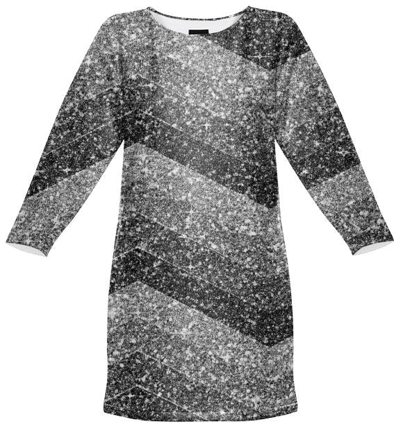 Long sleeve loose fitting sweatshirt dress with side seam pockets.