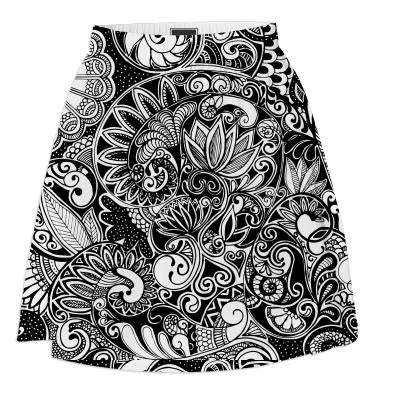Basic short a-line skirt with a nice drape elastic waistband and side seam pockets.
