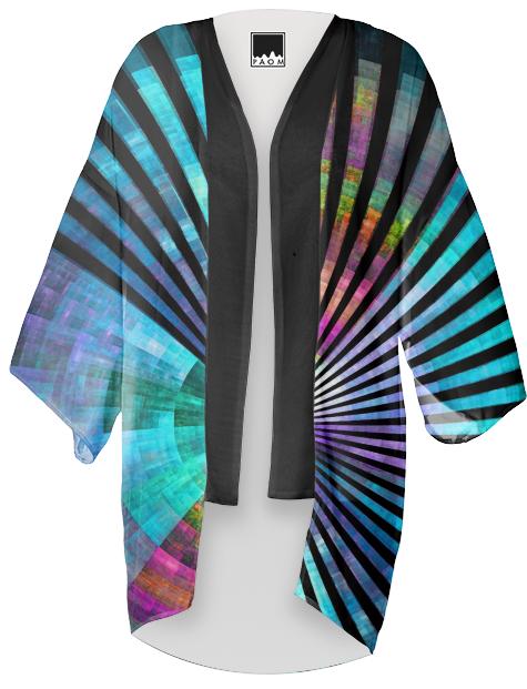 Flowy chiffon kimono falls nicely at mid thigh. Great for layering or using as a beach cover up.