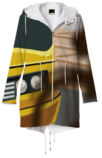 Light weight water resistant raincoat meant for easy layering in all sorts of rainy climates. Features waist & bottom hem drawstrings for definition and a double snap hood to protect against wind & rain.