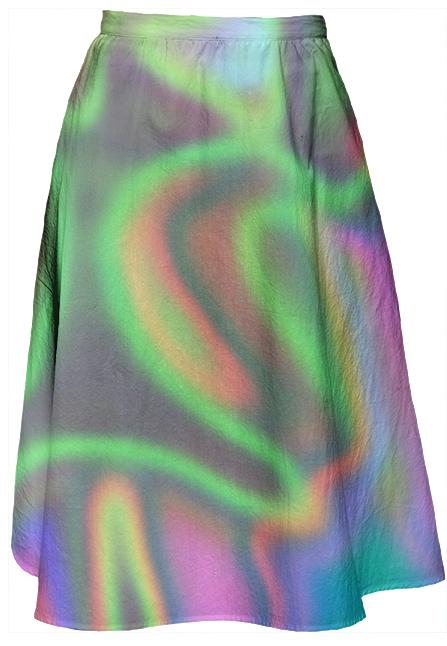 Knee length a-line skirt with a tailored waistband and invisible side seam zipper.
