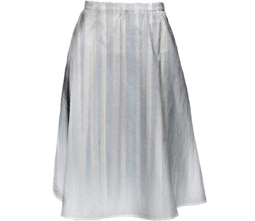 Knee length a-line skirt with a tailored waistband and invisible side seam zipper.