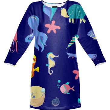 Long sleeve loose fitting sweatshirt dress with side seam pockets.