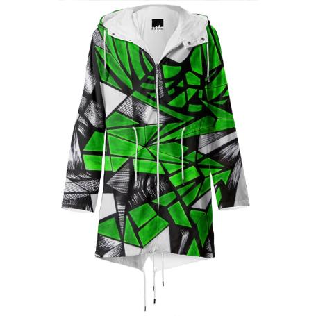 Light weight water resistant raincoat meant for easy layering in all sorts of rainy climates. Features waist & bottom hem drawstrings for definition and a double snap hood to protect against wind & rain.