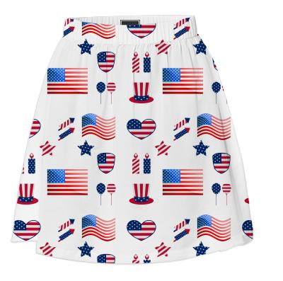 Basic short a-line skirt with a nice drape elastic waistband and side seam pockets.