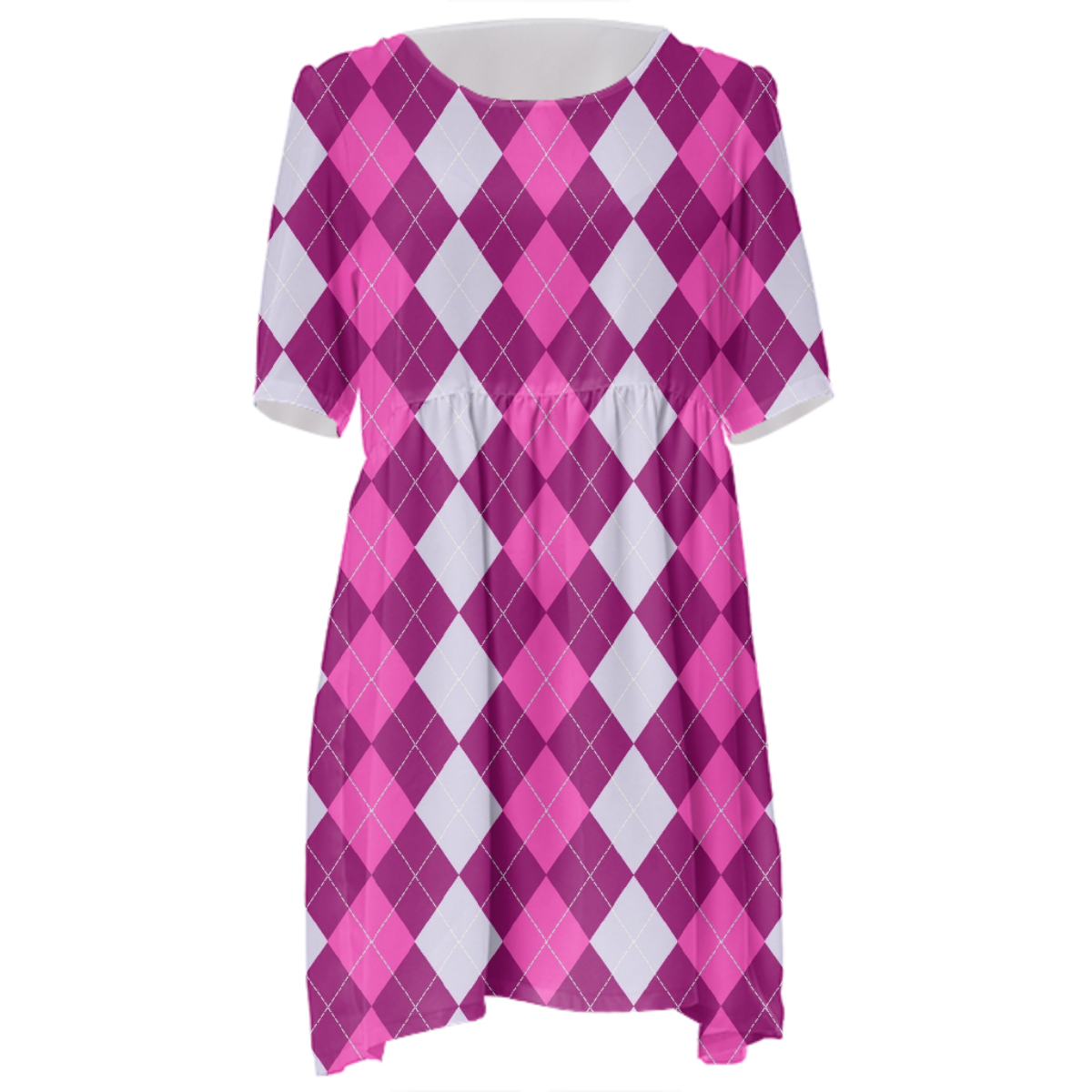 Loose swing fit babydoll dress with shirred waist short sleeves and scoop neckline. The uploaded file will be printed on the entire front and be mirrored on the back. The uploaded file will be printed on the entire front and be mirrored on the back. Because of our cut and sew process some print elements on pockets seams and sleeves might not match up. For best results please upload a PNG or JPG with RGB color profile and dimensions of at least 35 inches width by 40 inches length. DPI can be as low as 72. Since every piece is custom made, it may take 2-4 weeks for delivery. Made in our studio (Shanghai).