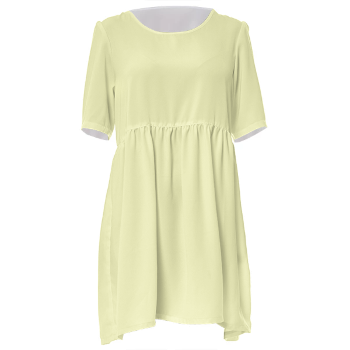 Loose swing fit babydoll dress with shirred waist short sleeves and scoop neckline. The uploaded file will be printed on the entire front and be mirrored on the back. The uploaded file will be printed on the entire front and be mirrored on the back. Because of our cut and sew process some print elements on pockets seams and sleeves might not match up. For best results please upload a PNG or JPG with RGB color profile and dimensions of at least 35 inches width by 40 inches length. DPI can be as low as 72. Since every piece is custom made, it may take 2-4 weeks for delivery. Made in our studio (Shanghai).