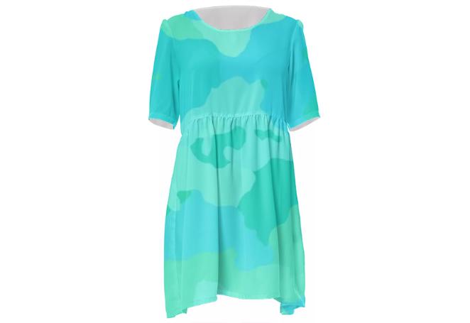 Loose swing fit babydoll dress with shirred waist short sleeves and scoop neckline. The uploaded file will be printed on the entire front and be mirrored on the back. The uploaded file will be printed on the entire front and be mirrored on the back. Because of our cut and sew process some print elements on pockets seams and sleeves might not match up. For best results please upload a PNG or JPG with RGB color profile and dimensions of at least 35 inches width by 40 inches length. DPI can be as low as 72. Since every piece is custom made, it may take 2-4 weeks for delivery. Made in our studio (Shanghai).