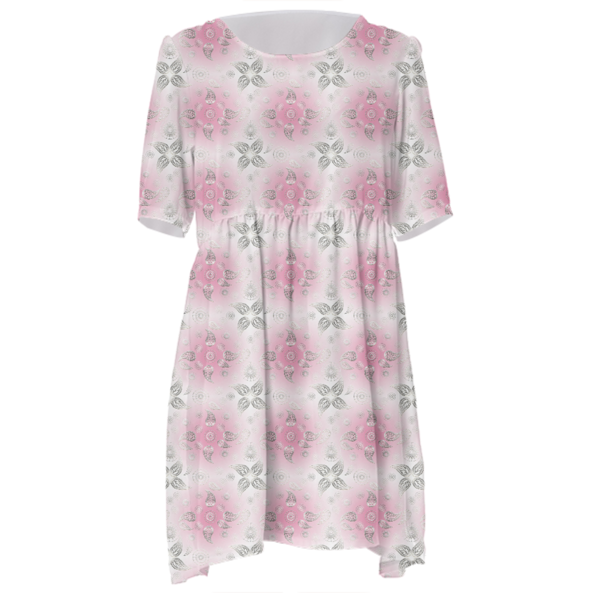 Loose swing fit babydoll dress with shirred waist short sleeves and scoop neckline. The uploaded file will be printed on the entire front and be mirrored on the back. The uploaded file will be printed on the entire front and be mirrored on the back. Because of our cut and sew process some print elements on pockets seams and sleeves might not match up. For best results please upload a PNG or JPG with RGB color profile and dimensions of at least 35 inches width by 40 inches length. DPI can be as low as 72. Since every piece is custom made, it may take 2-4 weeks for delivery. Made in our studio (Shanghai).