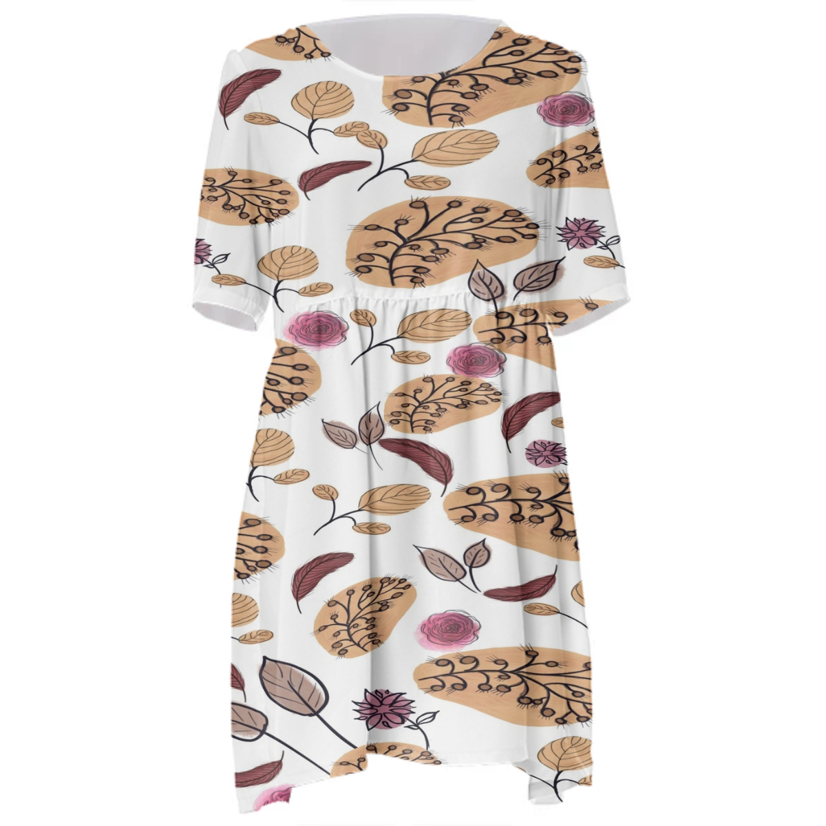 Loose swing fit babydoll dress with shirred waist short sleeves and scoop neckline. The uploaded file will be printed on the entire front and be mirrored on the back. The uploaded file will be printed on the entire front and be mirrored on the back. Because of our cut and sew process some print elements on pockets seams and sleeves might not match up. For best results please upload a PNG or JPG with RGB color profile and dimensions of at least 35 inches width by 40 inches length. DPI can be as low as 72. Since every piece is custom made, it may take 2-4 weeks for delivery. Made in our studio (Shanghai).