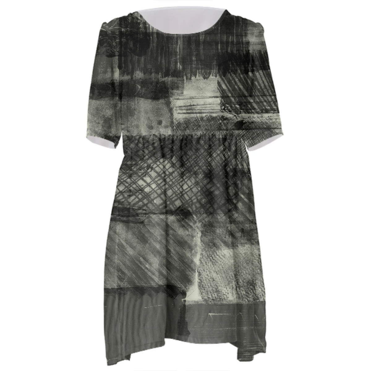 Loose swing fit babydoll dress with shirred waist short sleeves and scoop neckline. The uploaded file will be printed on the entire front and be mirrored on the back. The uploaded file will be printed on the entire front and be mirrored on the back. Because of our cut and sew process some print elements on pockets seams and sleeves might not match up. For best results please upload a PNG or JPG with RGB color profile and dimensions of at least 35 inches width by 40 inches length. DPI can be as low as 72. Since every piece is custom made, it may take 2-4 weeks for delivery. Made in our studio (Shanghai).