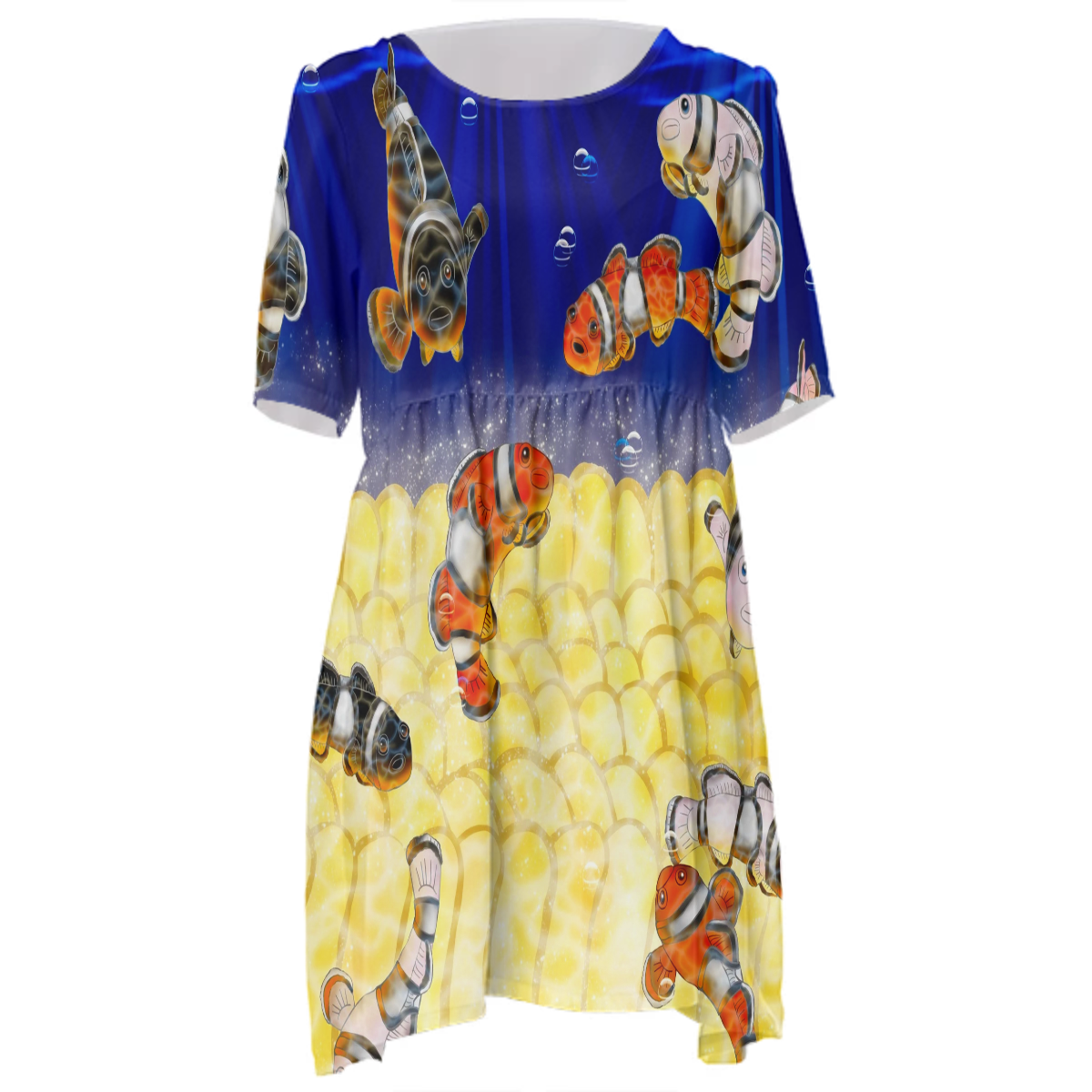 Loose swing fit babydoll dress with shirred waist short sleeves and scoop neckline. The uploaded file will be printed on the entire front and be mirrored on the back. The uploaded file will be printed on the entire front and be mirrored on the back. Because of our cut and sew process some print elements on pockets seams and sleeves might not match up. For best results please upload a PNG or JPG with RGB color profile and dimensions of at least 35 inches width by 40 inches length. DPI can be as low as 72. Since every piece is custom made, it may take 2-4 weeks for delivery. Made in our studio (Shanghai).