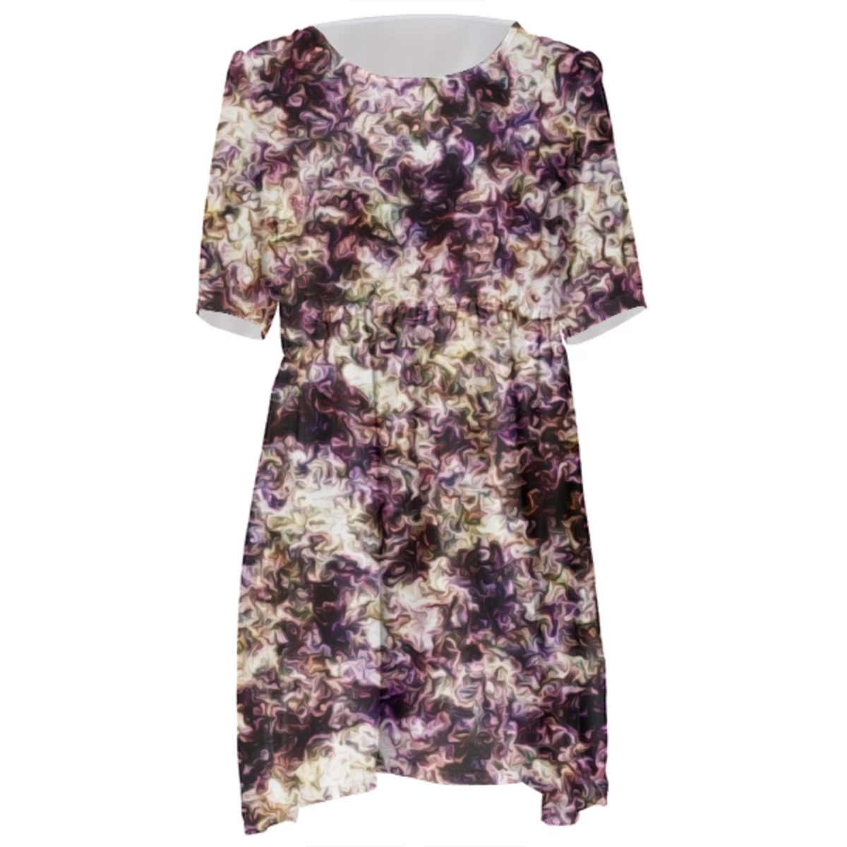 Loose swing fit babydoll dress with shirred waist short sleeves and scoop neckline. The uploaded file will be printed on the entire front and be mirrored on the back. The uploaded file will be printed on the entire front and be mirrored on the back. Because of our cut and sew process some print elements on pockets seams and sleeves might not match up. For best results please upload a PNG or JPG with RGB color profile and dimensions of at least 35 inches width by 40 inches length. DPI can be as low as 72. Since every piece is custom made, it may take 2-4 weeks for delivery. Made in our studio (Shanghai).