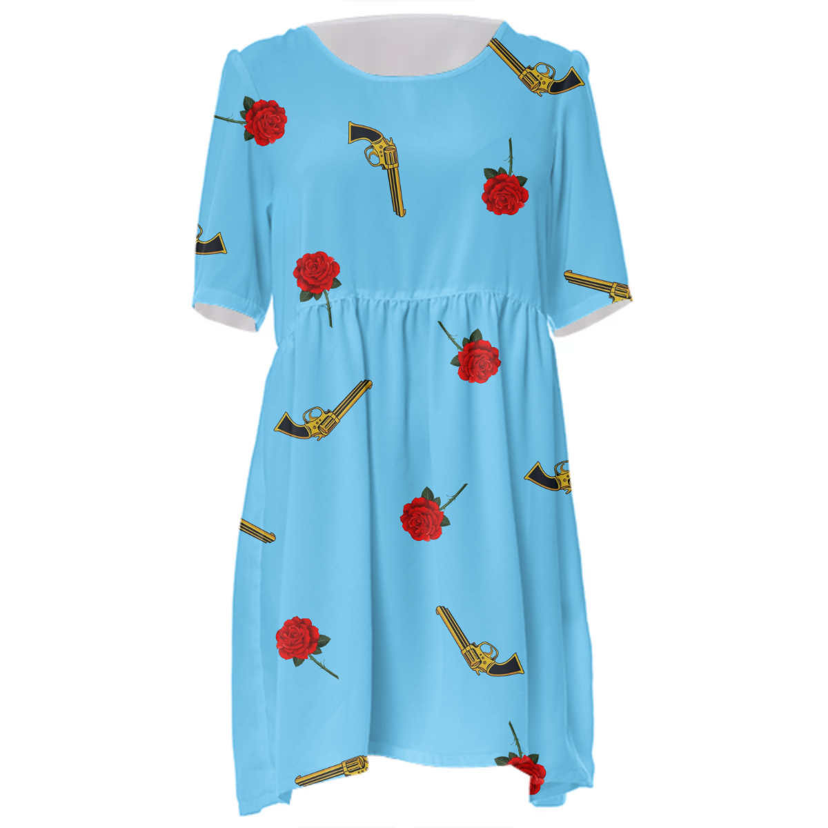 Loose swing fit babydoll dress with shirred waist short sleeves and scoop neckline. The uploaded file will be printed on the entire front and be mirrored on the back. The uploaded file will be printed on the entire front and be mirrored on the back. Because of our cut and sew process some print elements on pockets seams and sleeves might not match up. For best results please upload a PNG or JPG with RGB color profile and dimensions of at least 35 inches width by 40 inches length. DPI can be as low as 72. Since every piece is custom made, it may take 2-4 weeks for delivery. Made in our studio (Shanghai).
