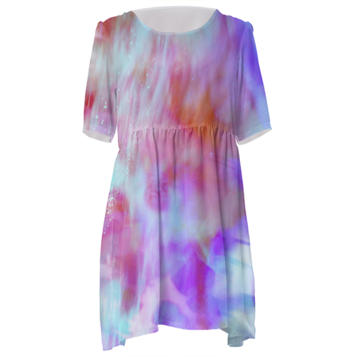Loose swing fit babydoll dress with shirred waist short sleeves and scoop neckline. The uploaded file will be printed on the entire front and be mirrored on the back. The uploaded file will be printed on the entire front and be mirrored on the back. Because of our cut and sew process some print elements on pockets seams and sleeves might not match up. For best results please upload a PNG or JPG with RGB color profile and dimensions of at least 35 inches width by 40 inches length. DPI can be as low as 72. Since every piece is custom made, it may take 2-4 weeks for delivery. Made in our studio (Shanghai).