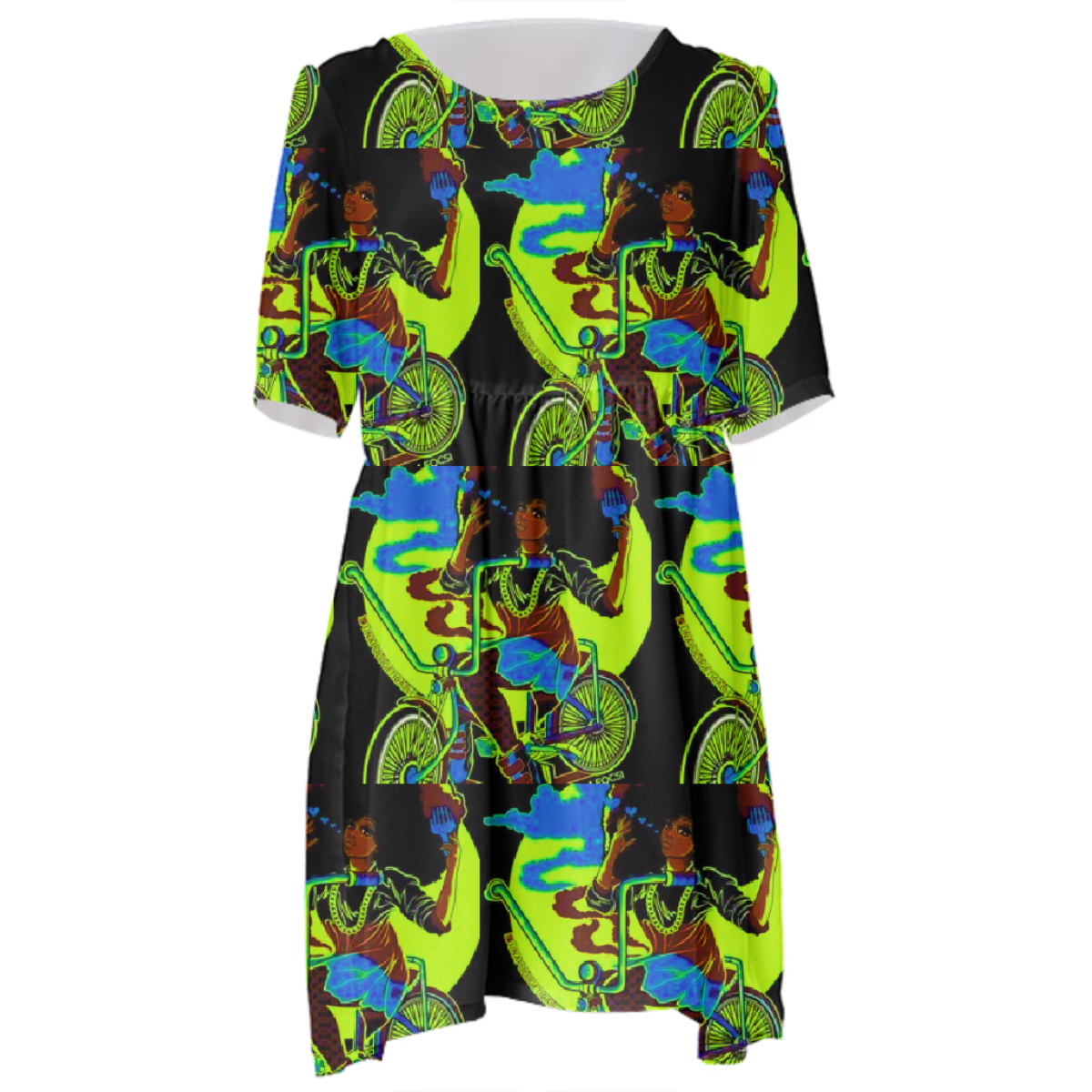 Loose swing fit babydoll dress with shirred waist short sleeves and scoop neckline. The uploaded file will be printed on the entire front and be mirrored on the back. The uploaded file will be printed on the entire front and be mirrored on the back. Because of our cut and sew process some print elements on pockets seams and sleeves might not match up. For best results please upload a PNG or JPG with RGB color profile and dimensions of at least 35 inches width by 40 inches length. DPI can be as low as 72. Since every piece is custom made, it may take 2-4 weeks for delivery. Made in our studio (Shanghai).