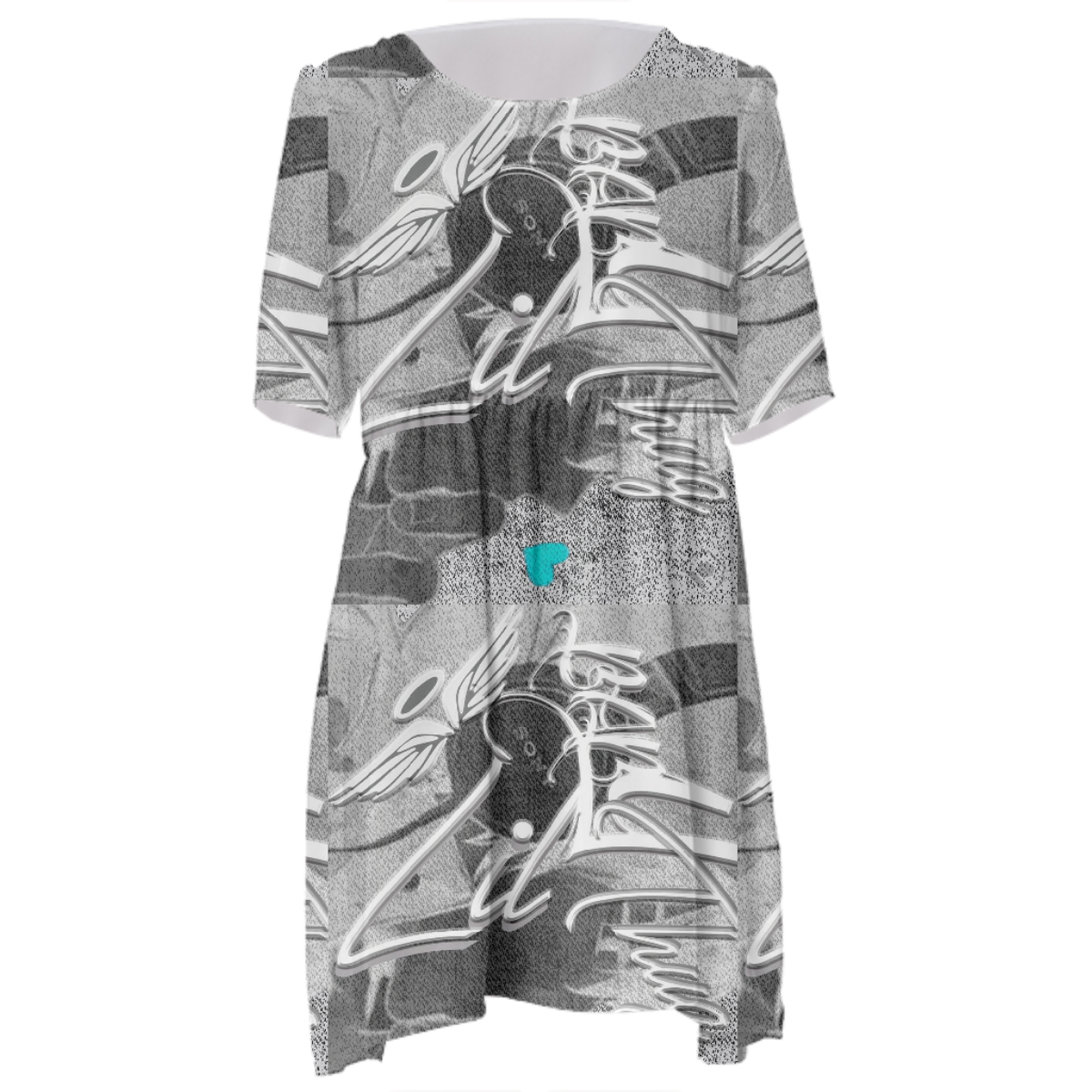 Loose swing fit babydoll dress with shirred waist short sleeves and scoop neckline. The uploaded file will be printed on the entire front and be mirrored on the back. The uploaded file will be printed on the entire front and be mirrored on the back. Because of our cut and sew process some print elements on pockets seams and sleeves might not match up. For best results please upload a PNG or JPG with RGB color profile and dimensions of at least 35 inches width by 40 inches length. DPI can be as low as 72. Since every piece is custom made, it may take 2-4 weeks for delivery. Made in our studio (Shanghai).
