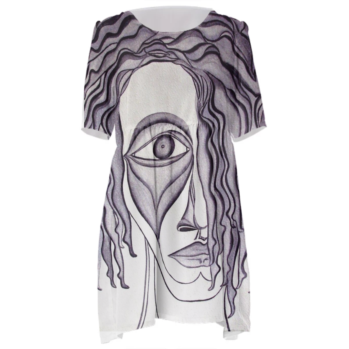 Loose swing fit babydoll dress with shirred waist short sleeves and scoop neckline. The uploaded file will be printed on the entire front and be mirrored on the back. The uploaded file will be printed on the entire front and be mirrored on the back. Because of our cut and sew process some print elements on pockets seams and sleeves might not match up. For best results please upload a PNG or JPG with RGB color profile and dimensions of at least 35 inches width by 40 inches length. DPI can be as low as 72. Since every piece is custom made, it may take 2-4 weeks for delivery. Made in our studio (Shanghai).