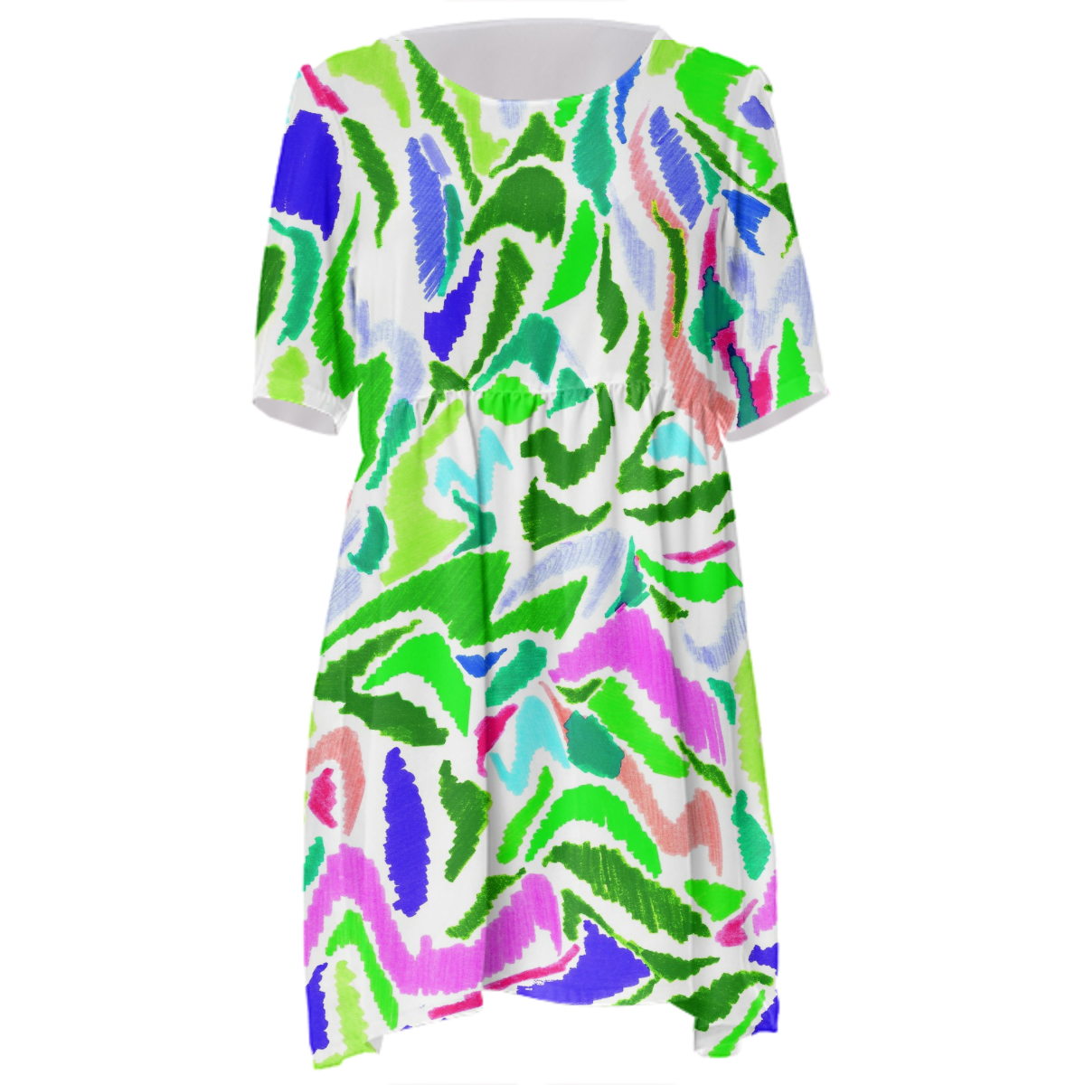 Loose swing fit babydoll dress with shirred waist short sleeves and scoop neckline. The uploaded file will be printed on the entire front and be mirrored on the back. The uploaded file will be printed on the entire front and be mirrored on the back. Because of our cut and sew process some print elements on pockets seams and sleeves might not match up. For best results please upload a PNG or JPG with RGB color profile and dimensions of at least 35 inches width by 40 inches length. DPI can be as low as 72. Since every piece is custom made, it may take 2-4 weeks for delivery. Made in our studio (Shanghai).