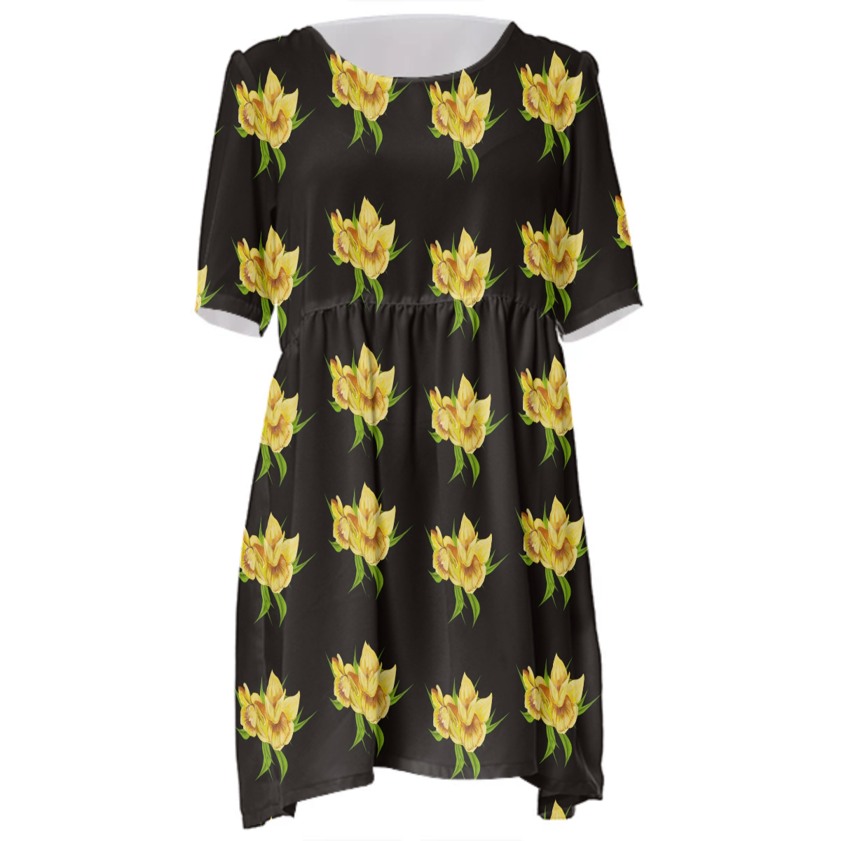 Loose swing fit babydoll dress with shirred waist short sleeves and scoop neckline. The uploaded file will be printed on the entire front and be mirrored on the back. The uploaded file will be printed on the entire front and be mirrored on the back. Because of our cut and sew process some print elements on pockets seams and sleeves might not match up. For best results please upload a PNG or JPG with RGB color profile and dimensions of at least 35 inches width by 40 inches length. DPI can be as low as 72. Since every piece is custom made, it may take 2-4 weeks for delivery. Made in our studio (Shanghai).