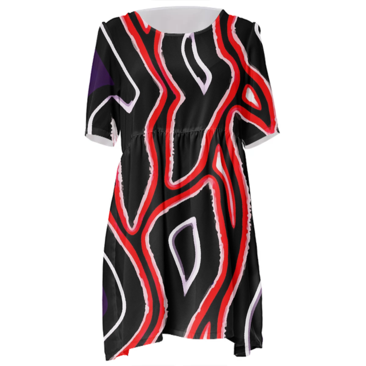 Loose swing fit babydoll dress with shirred waist short sleeves and scoop neckline. The uploaded file will be printed on the entire front and be mirrored on the back. The uploaded file will be printed on the entire front and be mirrored on the back. Because of our cut and sew process some print elements on pockets seams and sleeves might not match up. For best results please upload a PNG or JPG with RGB color profile and dimensions of at least 35 inches width by 40 inches length. DPI can be as low as 72. Since every piece is custom made, it may take 2-4 weeks for delivery. Made in our studio (Shanghai).