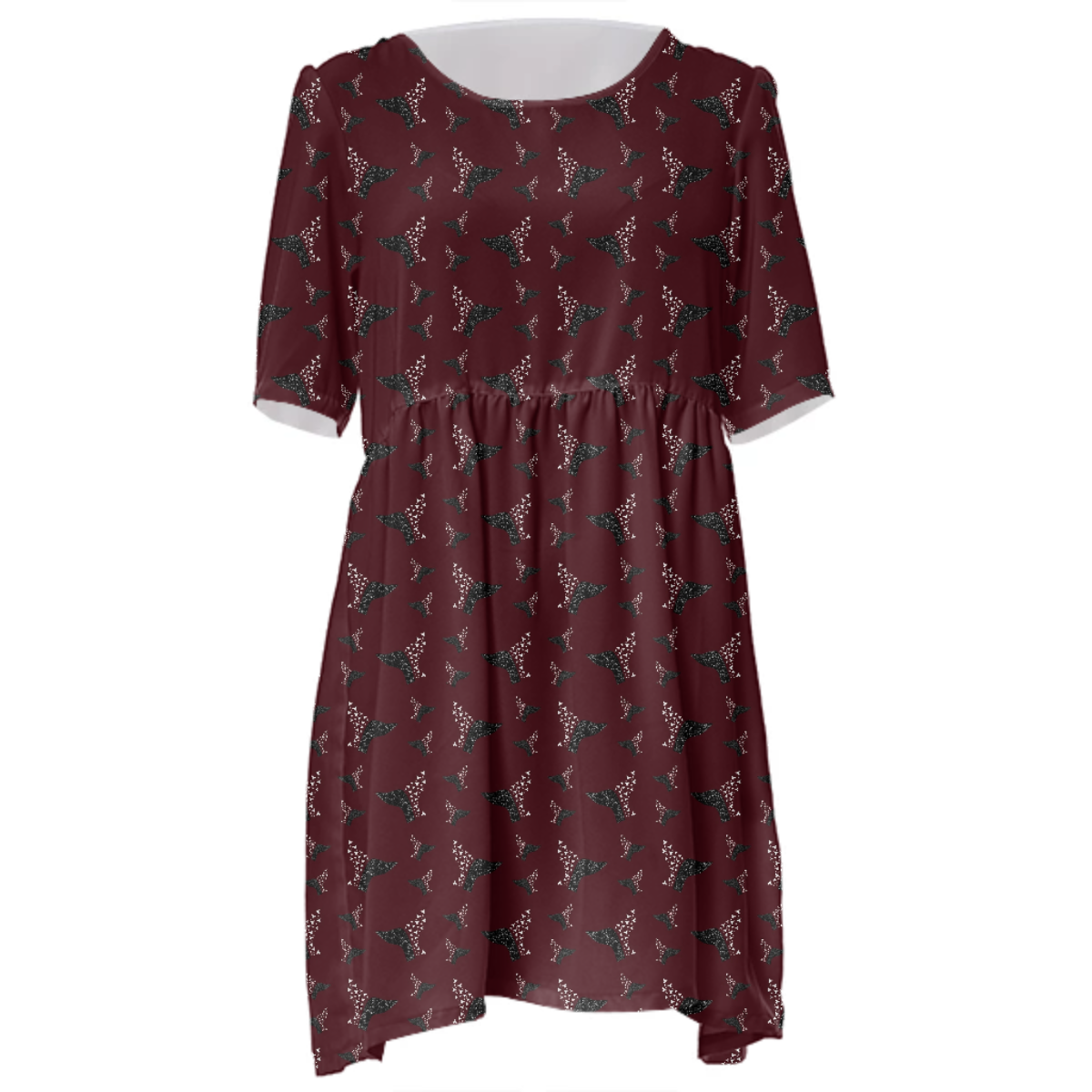Loose swing fit babydoll dress with shirred waist short sleeves and scoop neckline. The uploaded file will be printed on the entire front and be mirrored on the back. The uploaded file will be printed on the entire front and be mirrored on the back. Because of our cut and sew process some print elements on pockets seams and sleeves might not match up. For best results please upload a PNG or JPG with RGB color profile and dimensions of at least 35 inches width by 40 inches length. DPI can be as low as 72. Since every piece is custom made, it may take 2-4 weeks for delivery. Made in our studio (Shanghai).