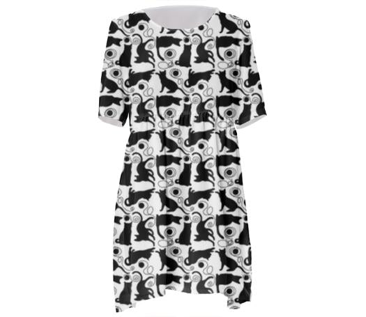 Loose swing fit babydoll dress with shirred waist short sleeves and scoop neckline. The uploaded file will be printed on the entire front and be mirrored on the back. The uploaded file will be printed on the entire front and be mirrored on the back. Because of our cut and sew process some print elements on pockets seams and sleeves might not match up. For best results please upload a PNG or JPG with RGB color profile and dimensions of at least 35 inches width by 40 inches length. DPI can be as low as 72. Since every piece is custom made, it may take 2-4 weeks for delivery. Made in our studio (Shanghai).