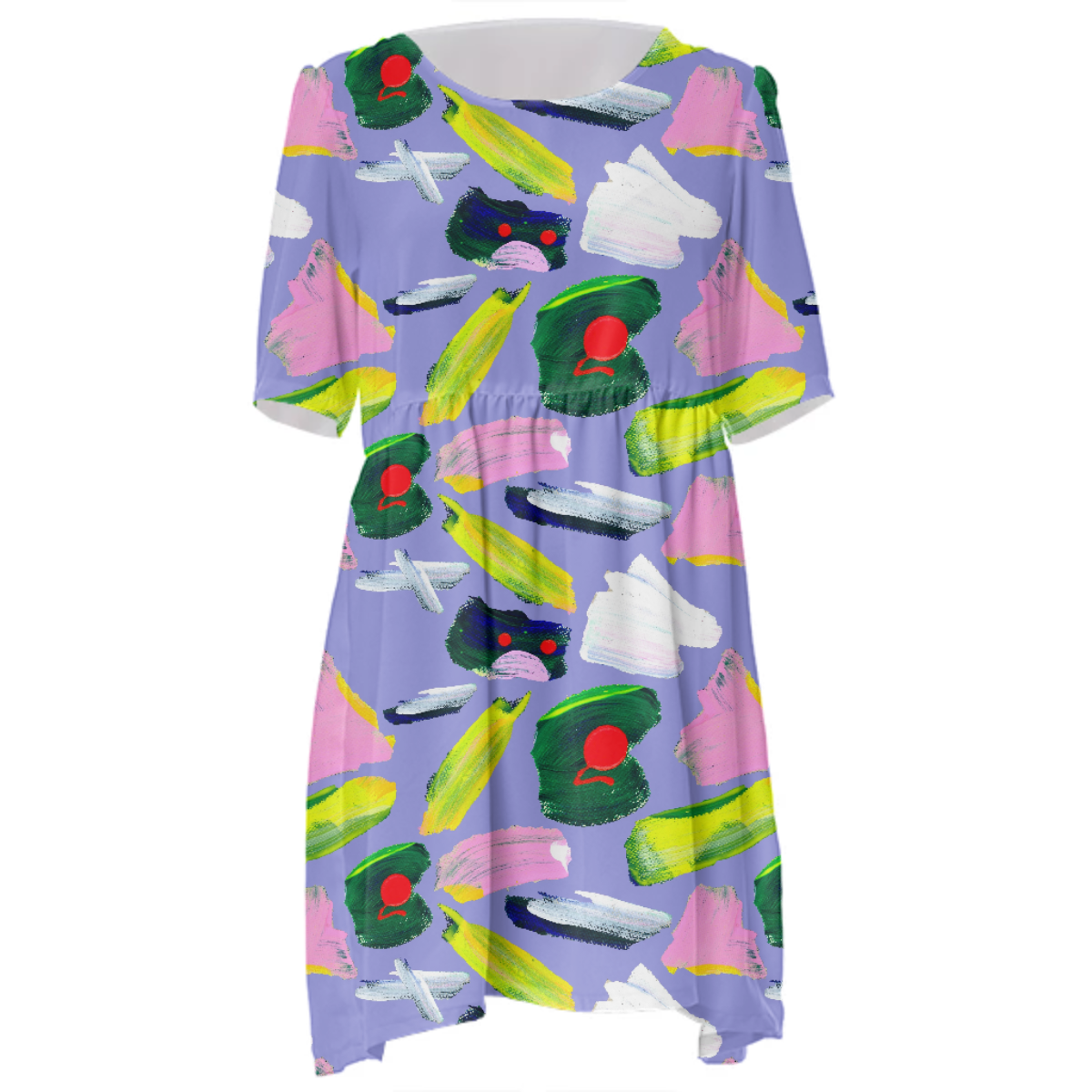 Loose swing fit babydoll dress with shirred waist short sleeves and scoop neckline. The uploaded file will be printed on the entire front and be mirrored on the back. The uploaded file will be printed on the entire front and be mirrored on the back. Because of our cut and sew process some print elements on pockets seams and sleeves might not match up. For best results please upload a PNG or JPG with RGB color profile and dimensions of at least 35 inches width by 40 inches length. DPI can be as low as 72. Since every piece is custom made, it may take 2-4 weeks for delivery. Made in our studio (Shanghai).