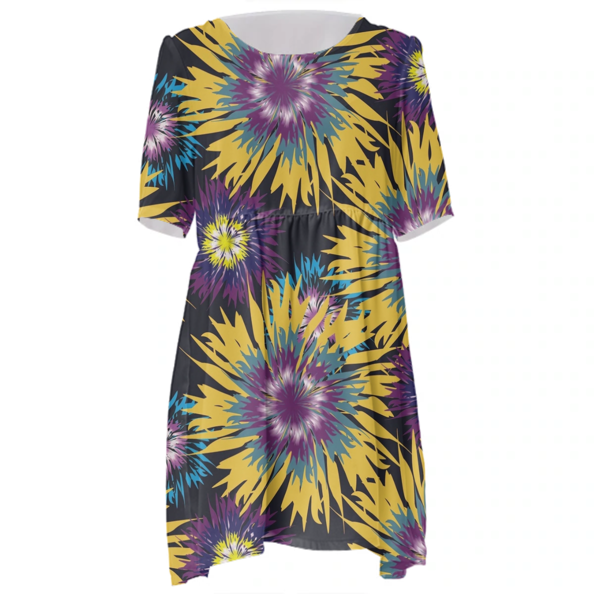 Loose swing fit babydoll dress with shirred waist short sleeves and scoop neckline. The uploaded file will be printed on the entire front and be mirrored on the back. The uploaded file will be printed on the entire front and be mirrored on the back. Because of our cut and sew process some print elements on pockets seams and sleeves might not match up. For best results please upload a PNG or JPG with RGB color profile and dimensions of at least 35 inches width by 40 inches length. DPI can be as low as 72. Since every piece is custom made, it may take 2-4 weeks for delivery. Made in our studio (Shanghai).
