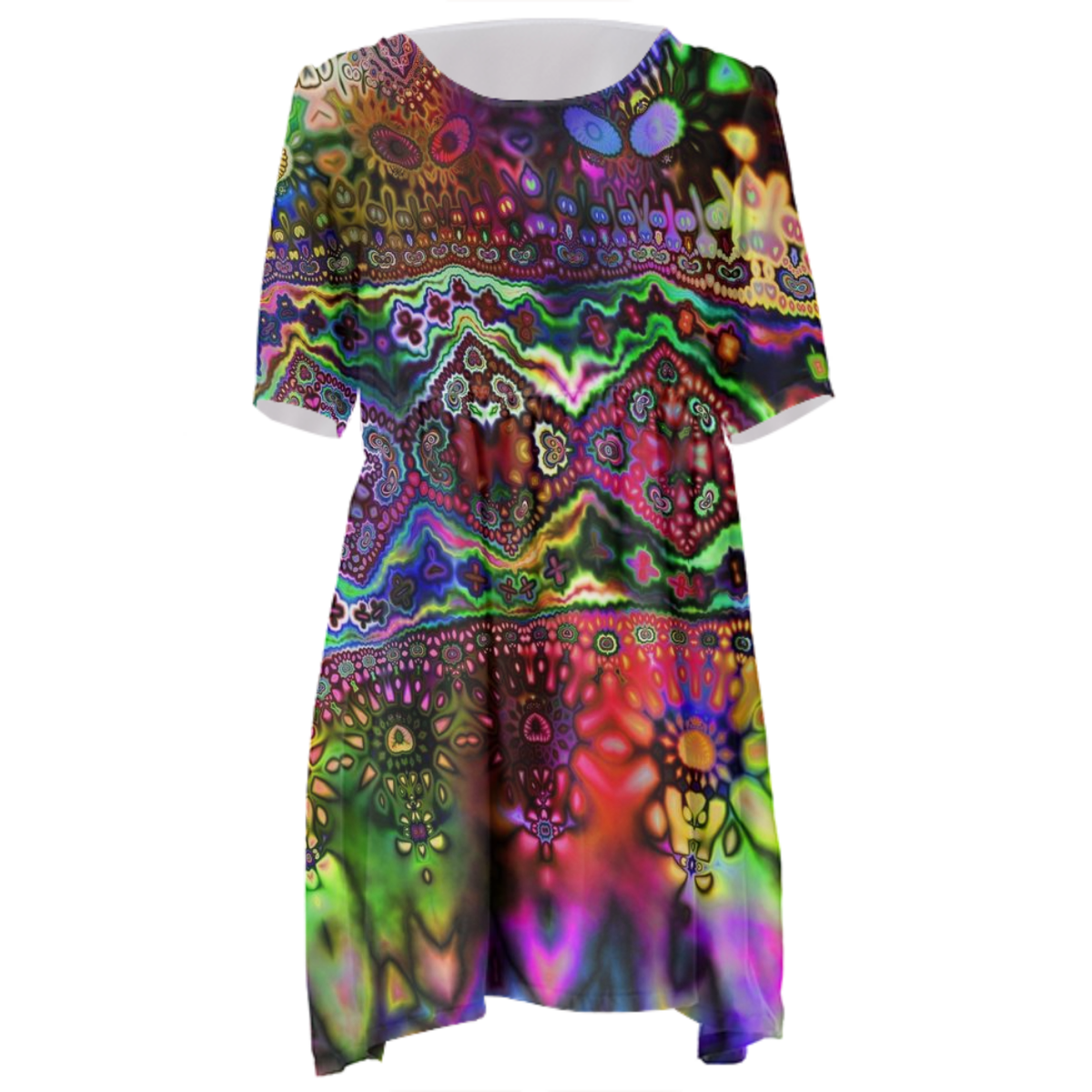 Loose swing fit babydoll dress with shirred waist short sleeves and scoop neckline. The uploaded file will be printed on the entire front and be mirrored on the back. The uploaded file will be printed on the entire front and be mirrored on the back. Because of our cut and sew process some print elements on pockets seams and sleeves might not match up. For best results please upload a PNG or JPG with RGB color profile and dimensions of at least 35 inches width by 40 inches length. DPI can be as low as 72. Since every piece is custom made, it may take 2-4 weeks for delivery. Made in our studio (Shanghai).