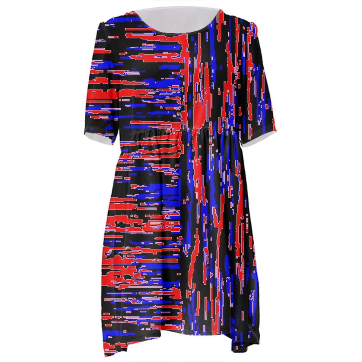 Loose swing fit babydoll dress with shirred waist short sleeves and scoop neckline. The uploaded file will be printed on the entire front and be mirrored on the back. The uploaded file will be printed on the entire front and be mirrored on the back. Because of our cut and sew process some print elements on pockets seams and sleeves might not match up. For best results please upload a PNG or JPG with RGB color profile and dimensions of at least 35 inches width by 40 inches length. DPI can be as low as 72. Since every piece is custom made, it may take 2-4 weeks for delivery. Made in our studio (Shanghai).