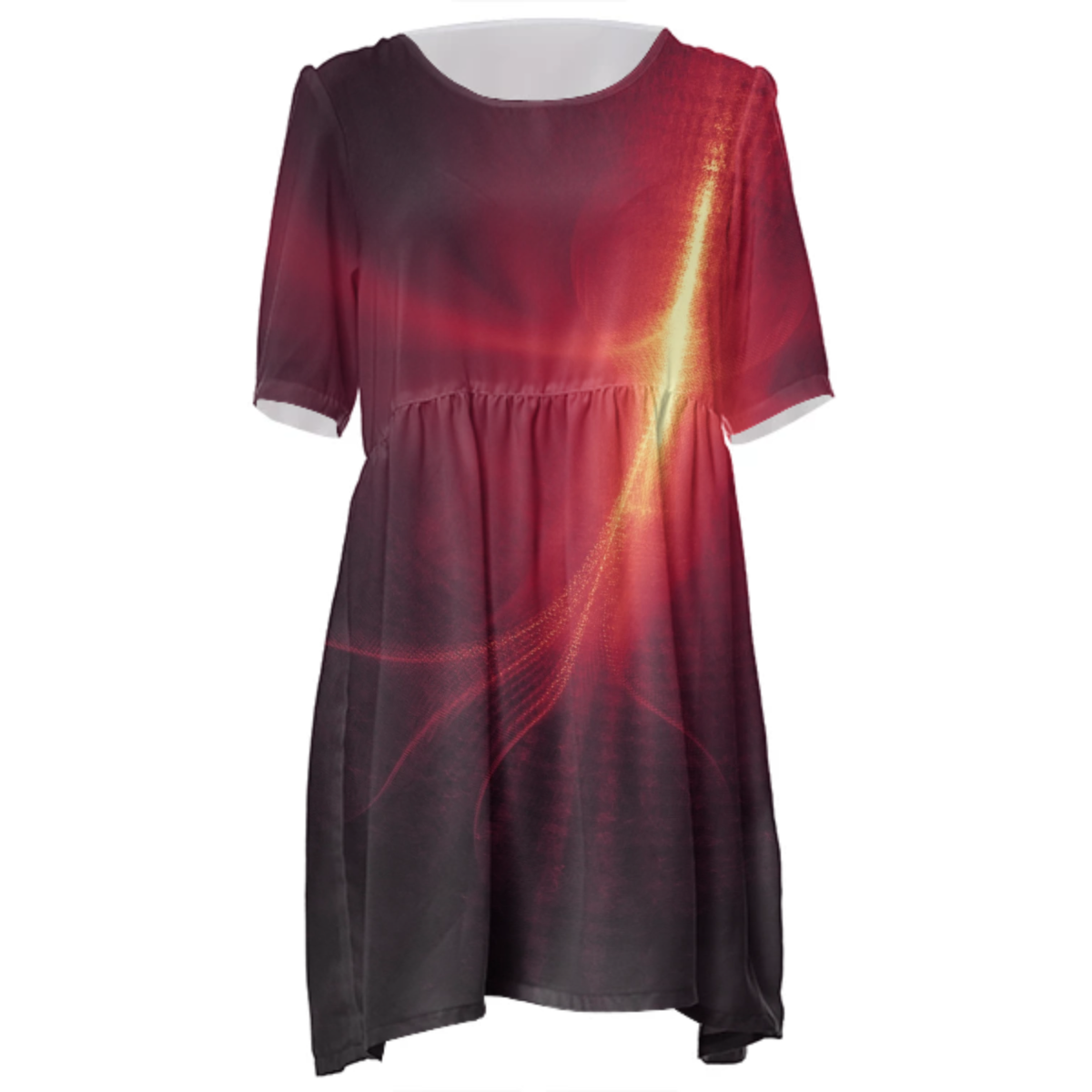 Loose swing fit babydoll dress with shirred waist short sleeves and scoop neckline. The uploaded file will be printed on the entire front and be mirrored on the back. The uploaded file will be printed on the entire front and be mirrored on the back. Because of our cut and sew process some print elements on pockets seams and sleeves might not match up. For best results please upload a PNG or JPG with RGB color profile and dimensions of at least 35 inches width by 40 inches length. DPI can be as low as 72. Since every piece is custom made, it may take 2-4 weeks for delivery. Made in our studio (Shanghai).