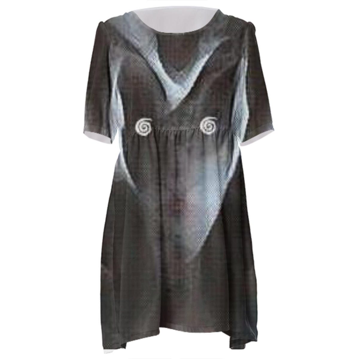 Loose swing fit babydoll dress with shirred waist short sleeves and scoop neckline. The uploaded file will be printed on the entire front and be mirrored on the back. The uploaded file will be printed on the entire front and be mirrored on the back. Because of our cut and sew process some print elements on pockets seams and sleeves might not match up. For best results please upload a PNG or JPG with RGB color profile and dimensions of at least 35 inches width by 40 inches length. DPI can be as low as 72. Since every piece is custom made, it may take 2-4 weeks for delivery. Made in our studio (Shanghai).