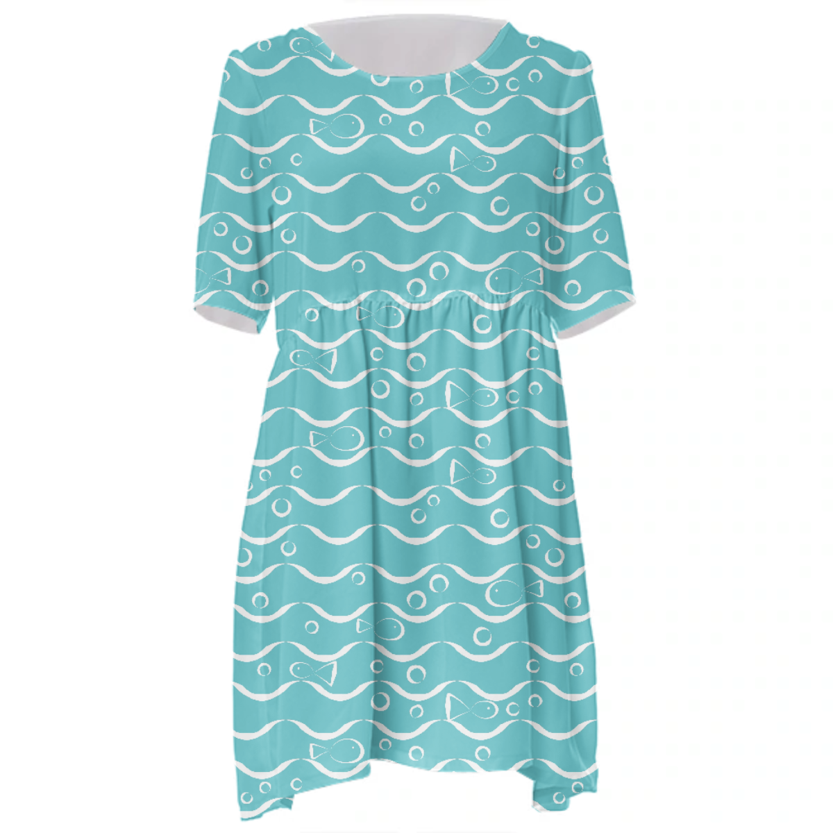 Loose swing fit babydoll dress with shirred waist short sleeves and scoop neckline. The uploaded file will be printed on the entire front and be mirrored on the back. The uploaded file will be printed on the entire front and be mirrored on the back. Because of our cut and sew process some print elements on pockets seams and sleeves might not match up. For best results please upload a PNG or JPG with RGB color profile and dimensions of at least 35 inches width by 40 inches length. DPI can be as low as 72. Since every piece is custom made, it may take 2-4 weeks for delivery. Made in our studio (Shanghai).