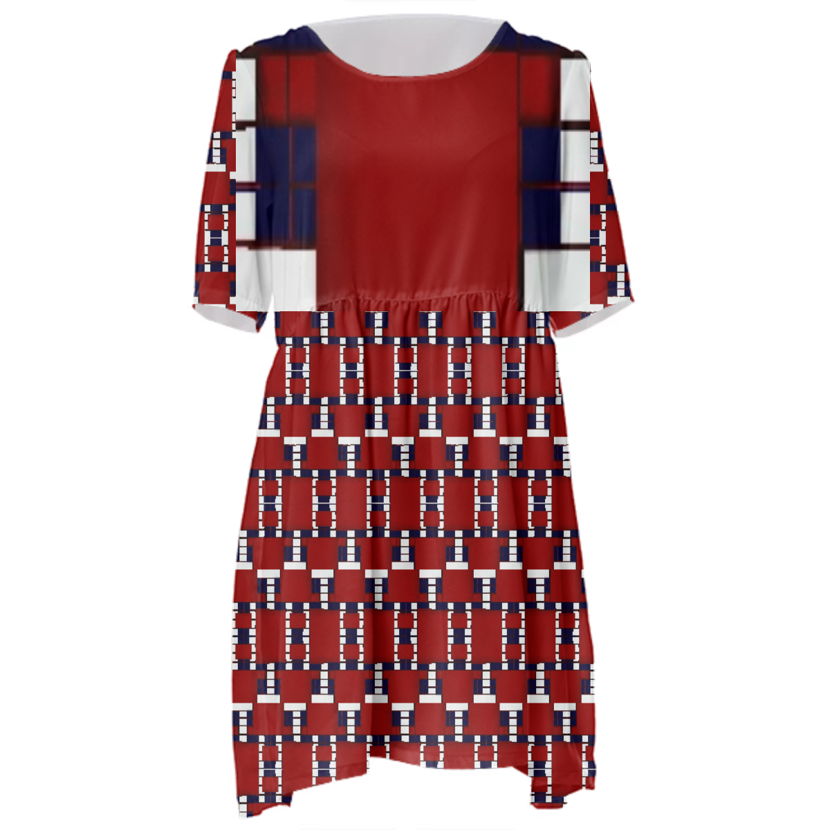 Loose swing fit babydoll dress with shirred waist short sleeves and scoop neckline. The uploaded file will be printed on the entire front and be mirrored on the back. The uploaded file will be printed on the entire front and be mirrored on the back. Because of our cut and sew process some print elements on pockets seams and sleeves might not match up. For best results please upload a PNG or JPG with RGB color profile and dimensions of at least 35 inches width by 40 inches length. DPI can be as low as 72. Since every piece is custom made, it may take 2-4 weeks for delivery. Made in our studio (Shanghai).